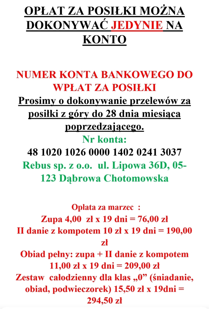Strona główna Jadłospis Wpłaty za obiady marzec