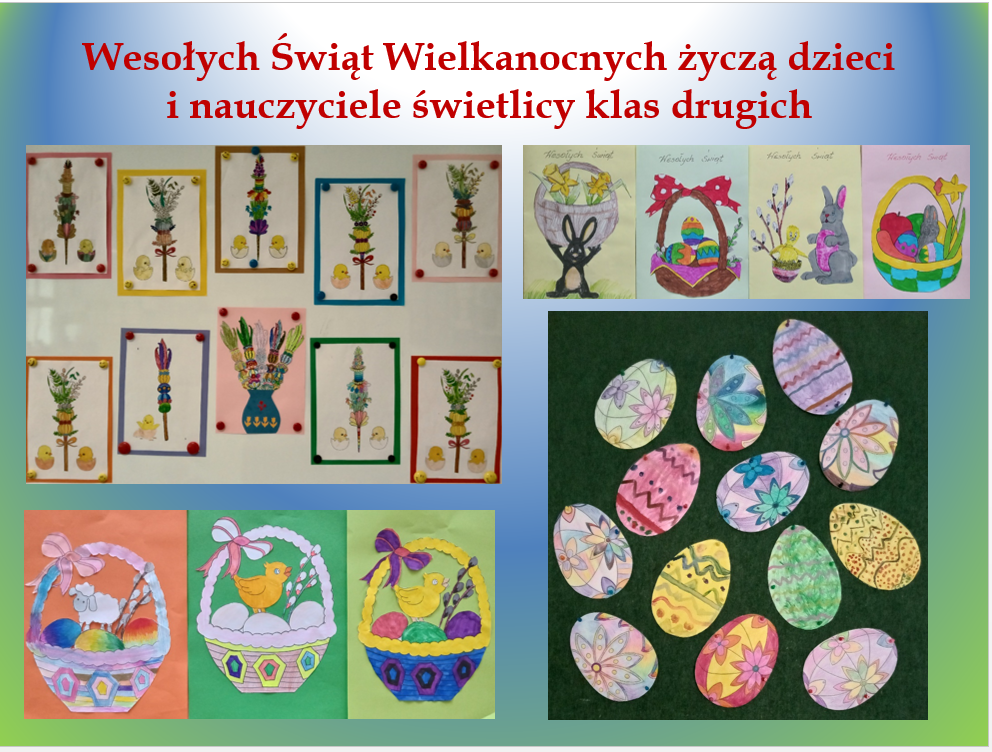 Wesołych Świąt Wielkanocnych życzą dzieci i nauczyciele świetlicy klas drugich
