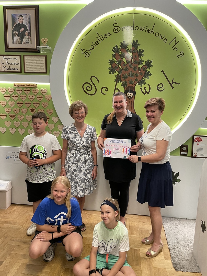 W dniu 18.06.2024 r. przedstawicielki grupy „TUPTUSIE” złożonej z nauczycieli, która zajęła I miejsce w MARSZOBIEGU, przekazały wygrany voucher w wysokości 300 zł na ręce kierowniczki świetlicy środowiskowej „SCHOWEK” p. Justyny Fijałkowskiej na wsparcie jej podopiecznych.