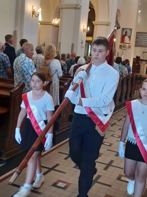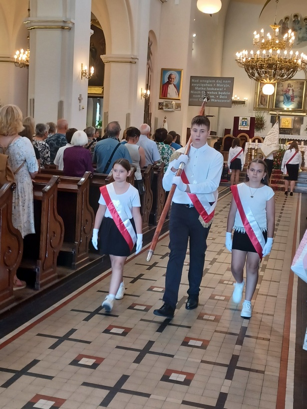 Nasza szkoła wzięła w tej uroczystości czynny udział reprezentując placówkę z Panią Dyrektor Ireną Małyszczuk wraz z uczniami i pocztem sztandarowym, który uświetnia najważniejsze uroczystości szkolne. Dodaje im powagi i przywołuje polskie tradycje patriotyczne, tym razem upamiętniające wydarzenia Bitwy Warszawskiej, zwyczajowo nazywanej Cudem nad Wisłą - stoczonej w dniach 13–25 sierpnia 1920.