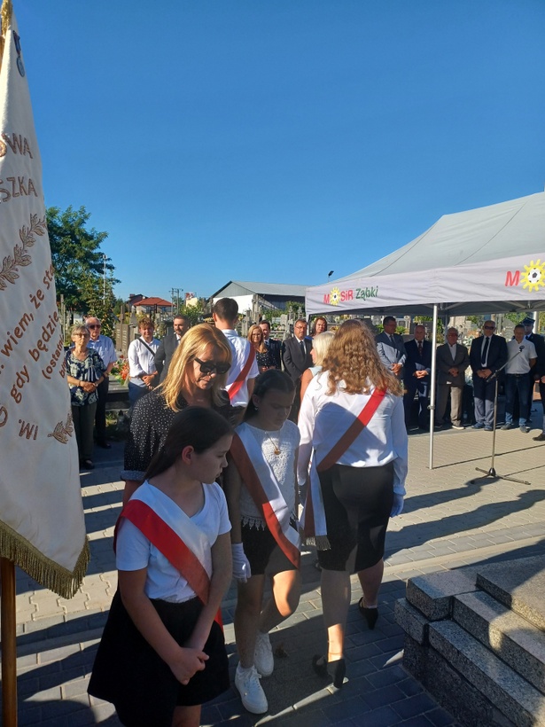 Następnie, zgromadzeni goście, z Orkiestrą Dętą Miasta Ząbki na czele, przemaszerowali pod pomnik Poległych w obronie Ojczyzny w sierpniu 1920 r., na cmentarz parafialny przy ul. Piłsudskiego. Tam zostały złożone kwiaty przez Dyrektorów szkół wraz z uczniami. Na zakończenie, przemówienie wygłosiła i podziękowała zebranym gościom Małgorzata Zyśk Burmistrz Miasta Ząbki.