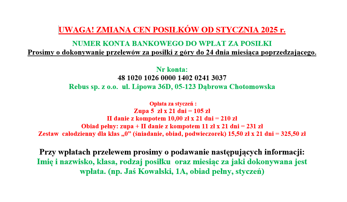 Strona główna Jadłospis Informacja o wpłatach za obiady...