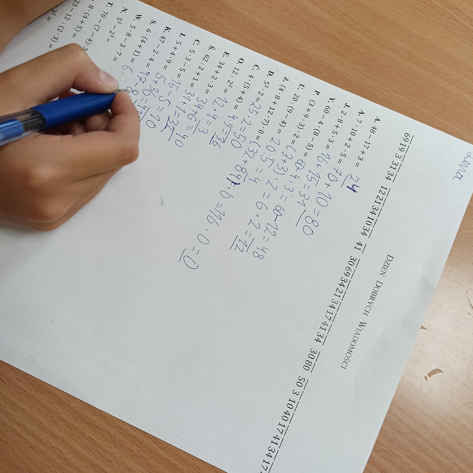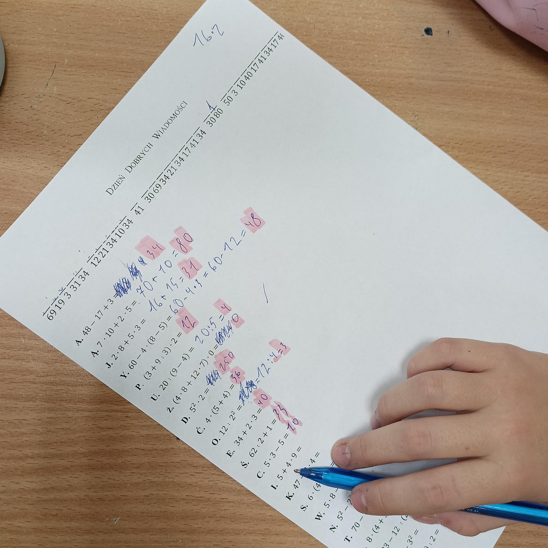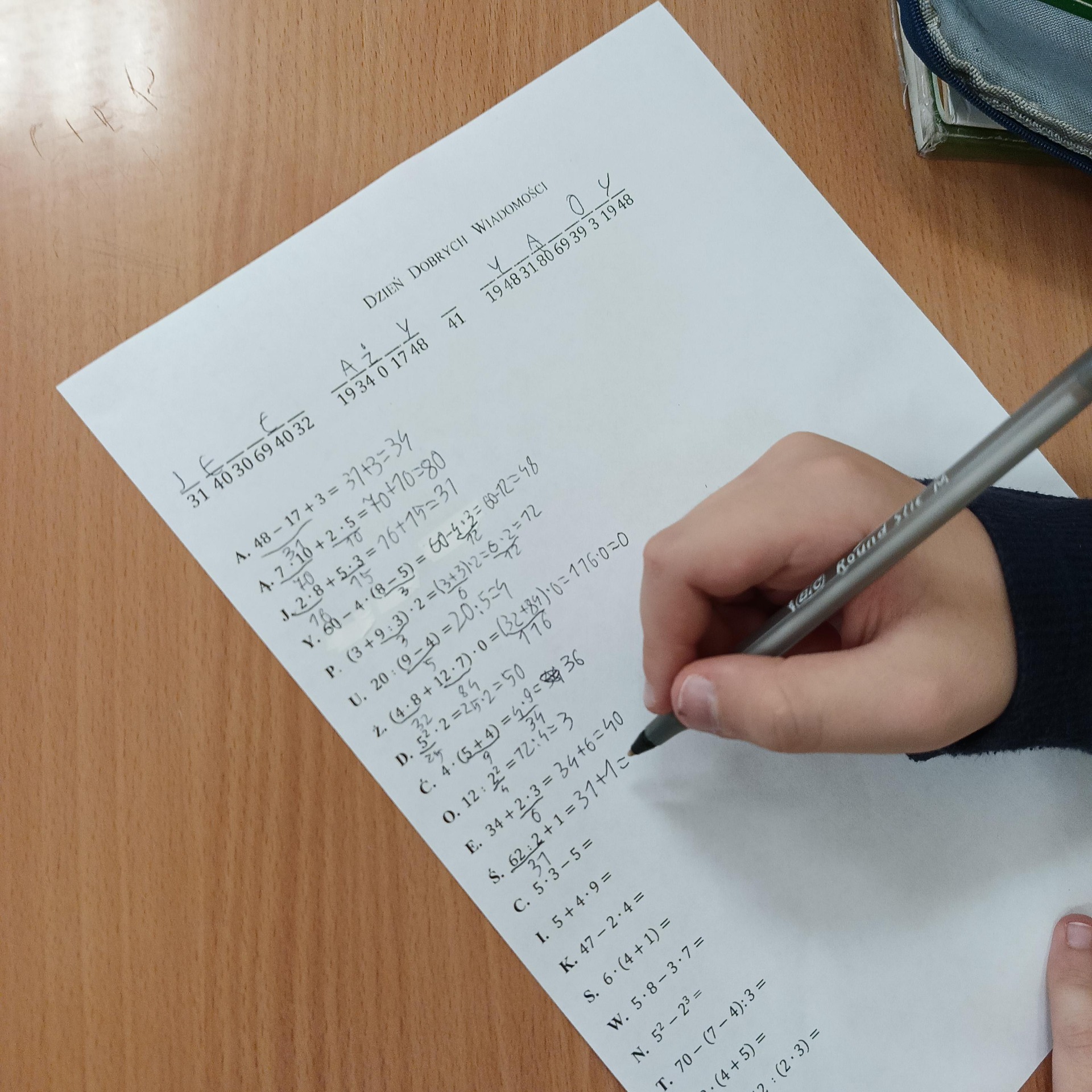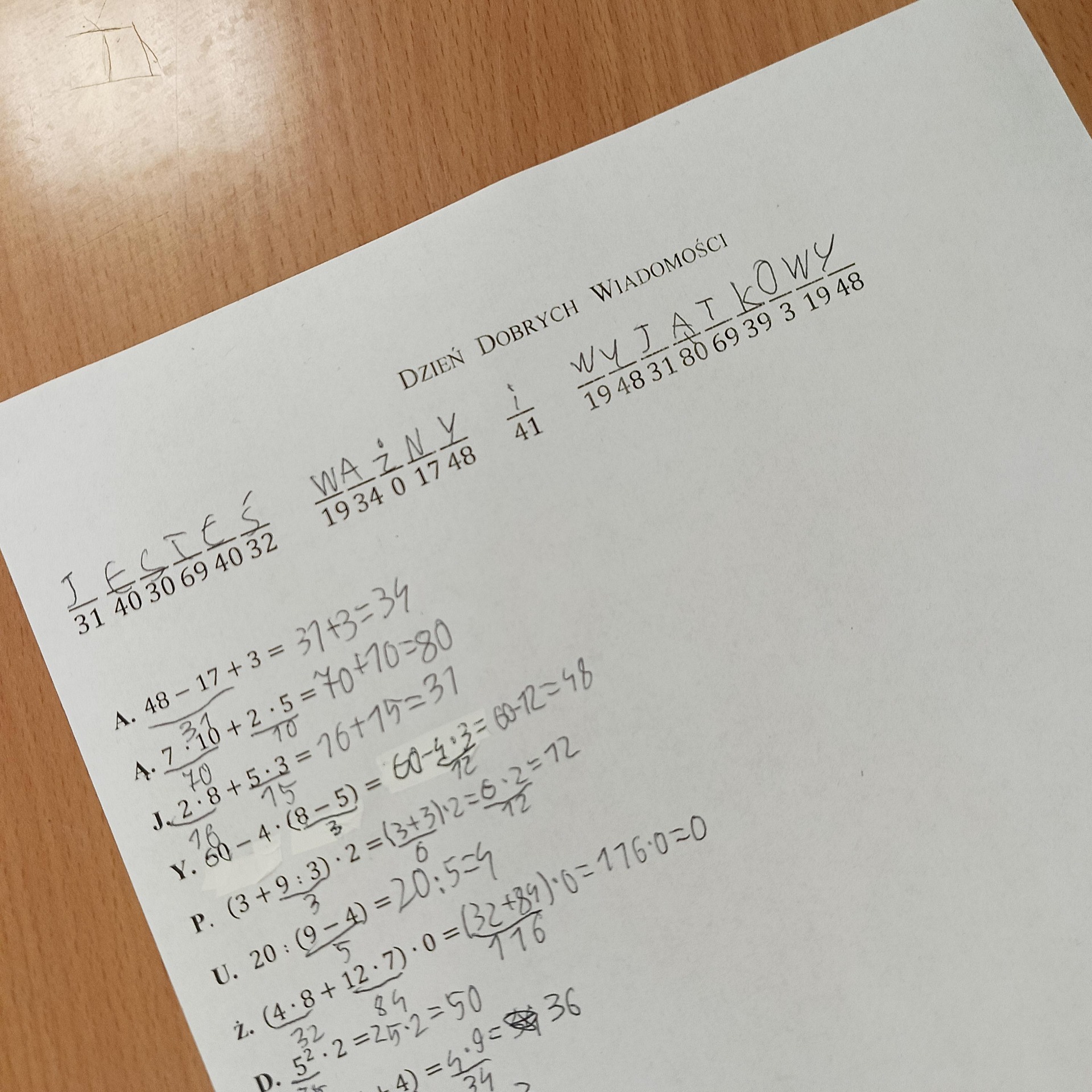 Dzisiaj Uczniowie klasy 5a rozwikłali z zainteresowaniem zaszyfrowane dobre wiadomości, utrwalając kolejność wykonywania działań 😊