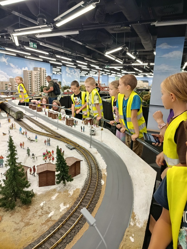 Po wizycie w Kolejkowie dzieci z klasy 2a wróciły pełne wrażeń i uśmiechów. Z zachwytem oglądały miniaturowe makiety, podziwiając precyzję i szczegóły. Była to nie tylko świetna zabawa, ale też fantastyczna lekcja historii i techniki w miniaturze. Wszyscy wrócili z głowami pełnymi inspiracji i nowej wiedzy.