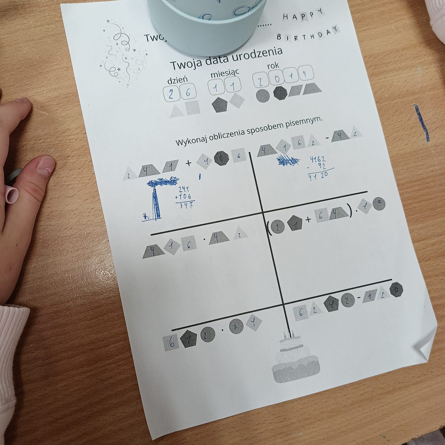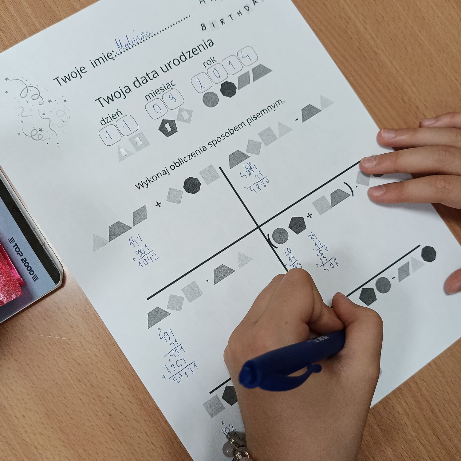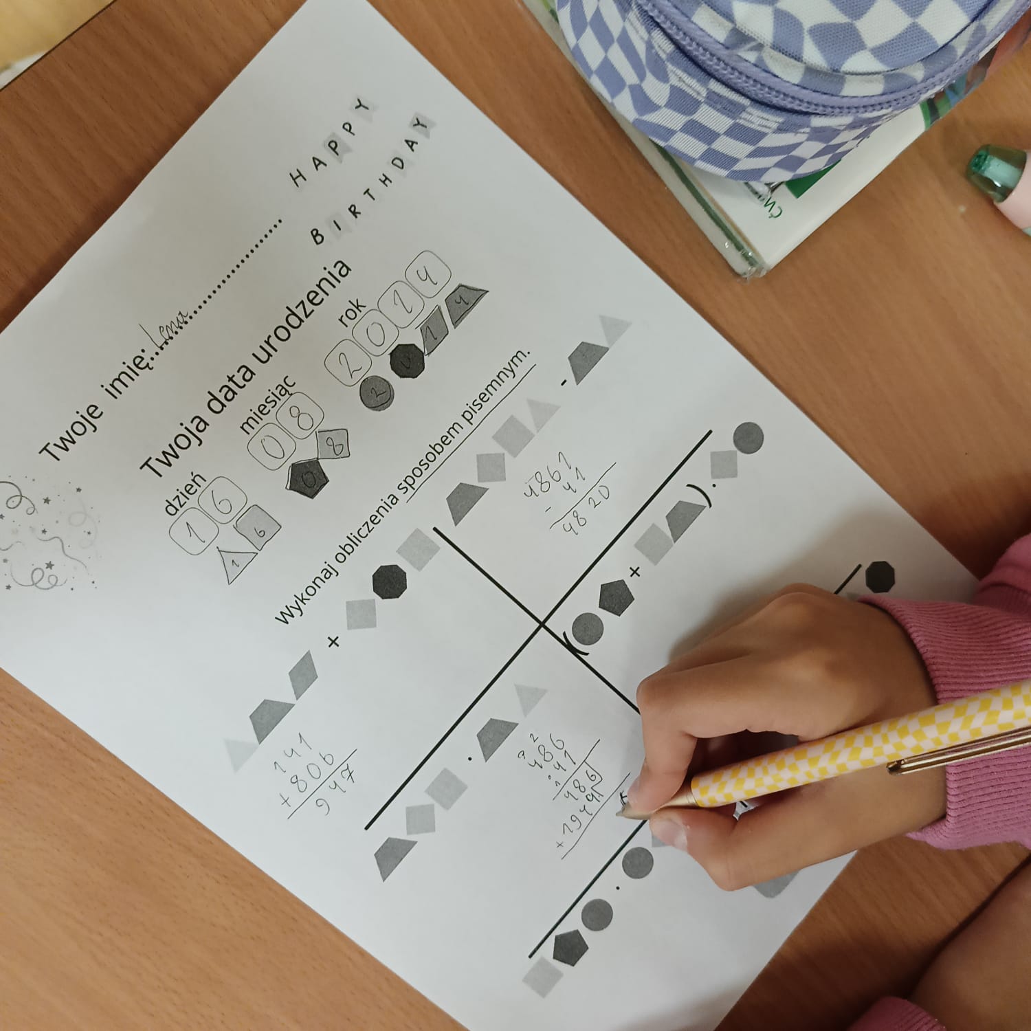 Uczniowie z klasy 5a Szkoła Podstawowa nr 2 im. Jana Kochanowskiego w Ząbkach wykonali zadanie 2 z modułu I: „Tajemnica daty urodzenia” Wykonując zaszyfrowane działania uczniowie świetnie się bawili. Próbowali też samodzielnie ułożyć i rozwiązać inne działania, składające się z cyfr daty urodzenia 🙂