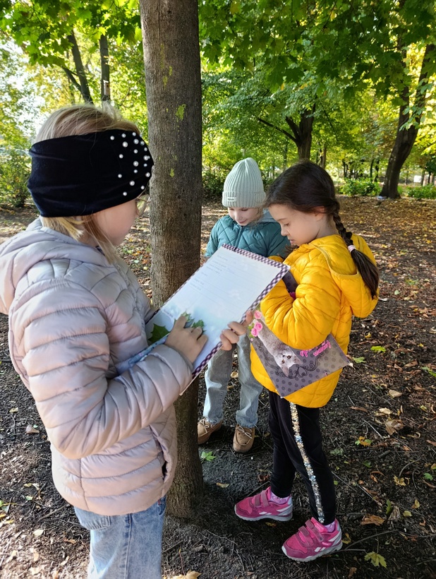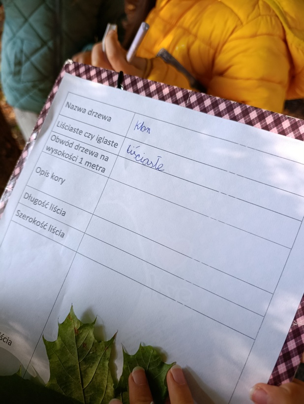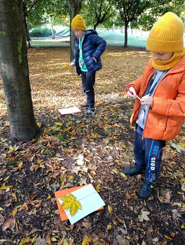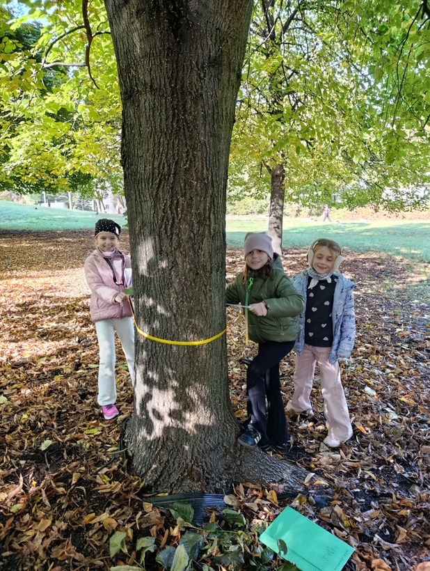 Dzisiaj 8 października klasa 2a była w pobliskim parku na zajęciach przyrodniczych. Dzieci miały do wykonania różne zadania min. dopasować liść do danego drzewa, zmierzyć jego długość i szerokość, zmierzyć obwód pnia na podanej wysokości, opisać strukturę kory oraz nazwać wybrane drzewo. Dzieci z wielkim zaangażowaniem uczestniczyły w odkrywaniu przyrodniczych tajemnic a także poznawały różnorodność flory parku.