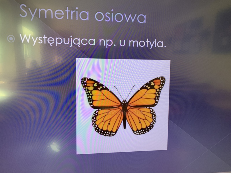 Na początku lekcji uczniowie zapoznali się, czym jest oś symetrii i jak można ją rozpoznawać w różnych figurach.