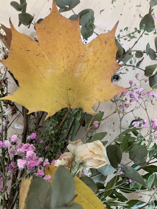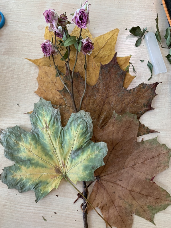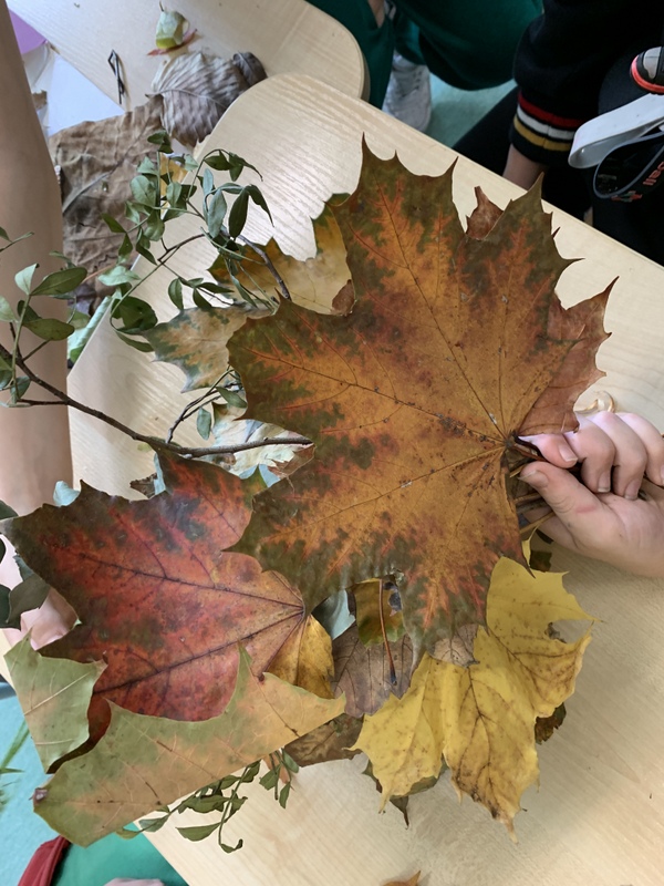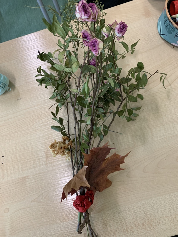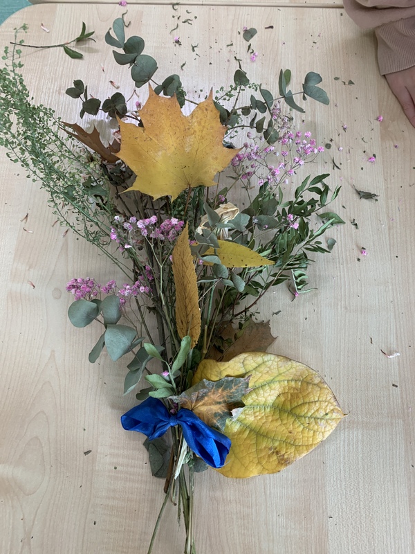 W kolejnej części zajęć uczniowie tworzyli kompozycje plastyczne - bukiety z symetrycznych, jesiennych liści i ususzonych kwiatów. W ten sposób połączyli matematykę z plastyką i przyrodą, przekonując, że symetria to nie tylko pojęcie matematyczne, ale również element otaczającego nas świata.
