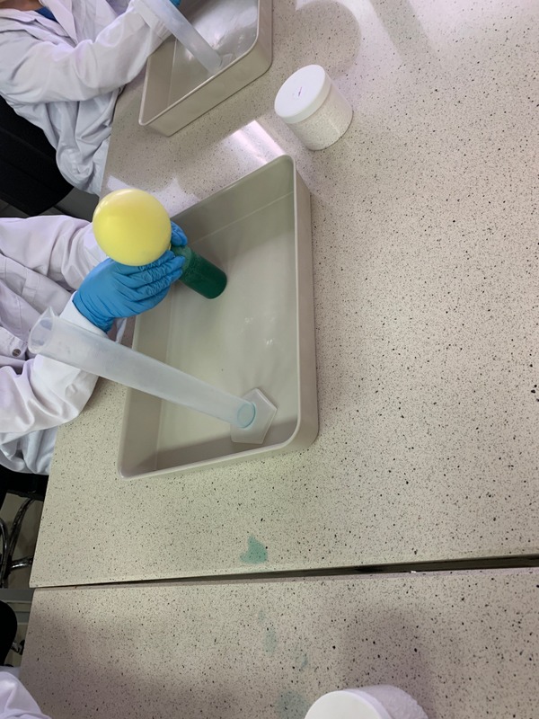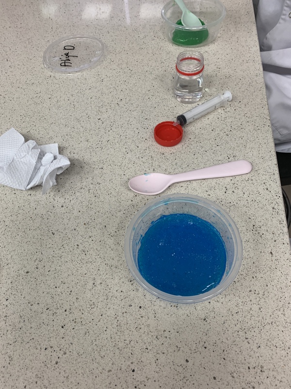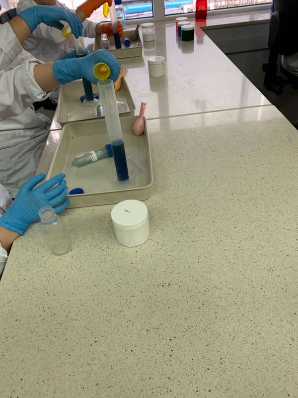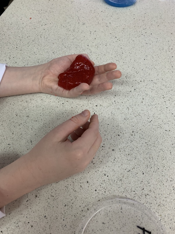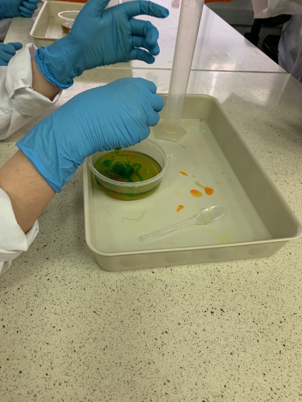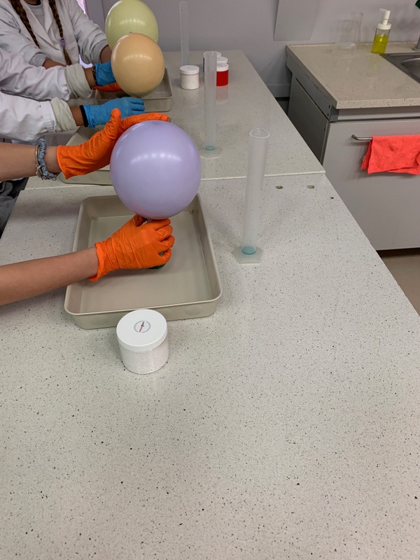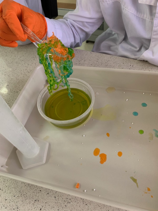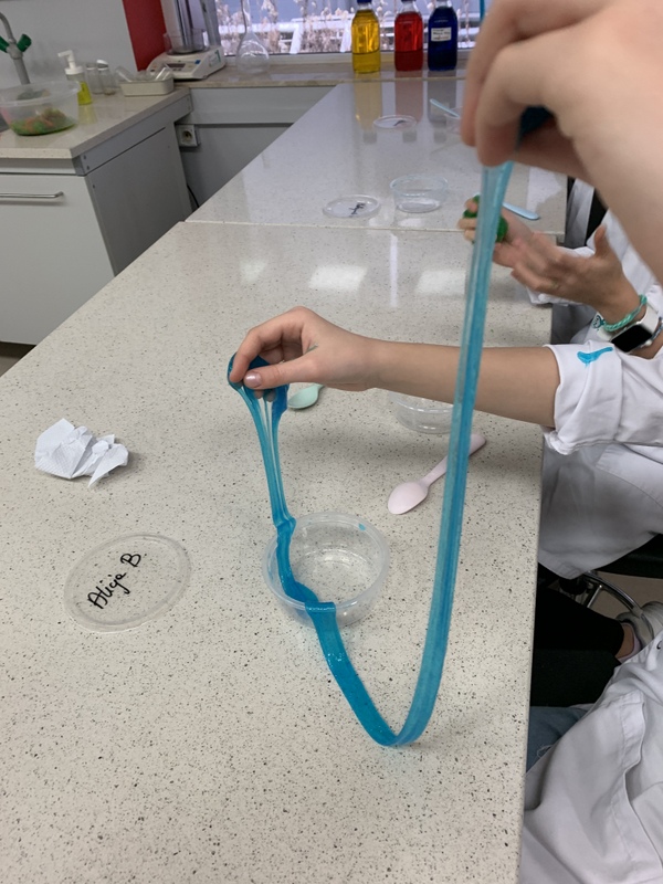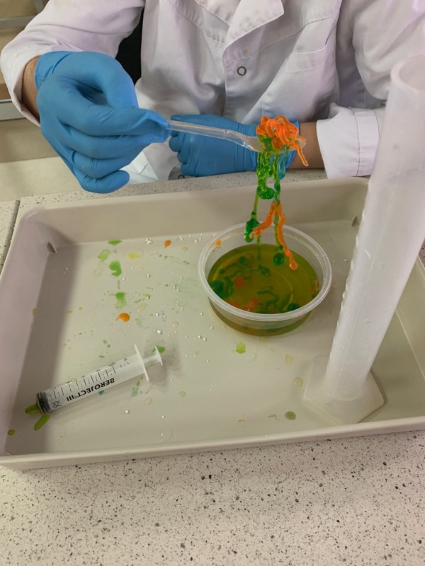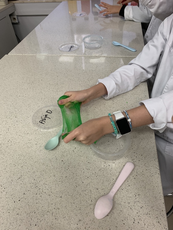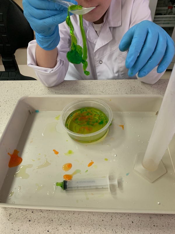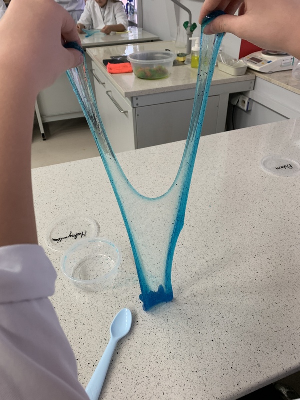 Podczas zajęć uczniowie tworzyli własne slime i kolorowe żelki oraz mogli wyprodukować gaz- dwutlenek węgla.