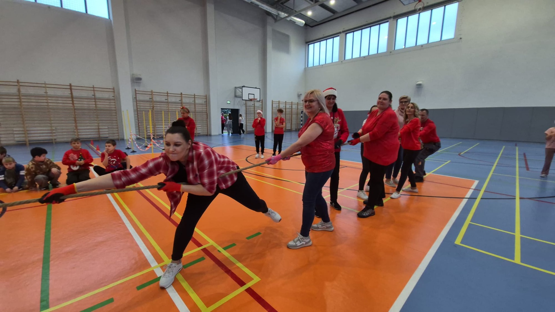 5 grudnia 2025 w Naszej szkole odbyła się kolejna edycja zawodów w przeciąganiu liny. Do rywalizacji stanęły drużyny złożone z uczniów rywalizujące w swoich poziomach kształcenia oraz cztery wyjątkowe drużyny złożone z nauczycieli, pracowników szkoły, rodziców i samorządu uczniowskiego. W naszej rywalizacji jak zwykle wynik nie był rzeczą najważniejszą, a liczyła się przede wszystkim dobra zabawa. Emocji było bardzo dużo a głośny doping zagrzewał do walki. Zabawa była rewelacyjna, a uśmiech towarzyszył wszystkim, którzy tego dnia stawili się na hali sportowej.