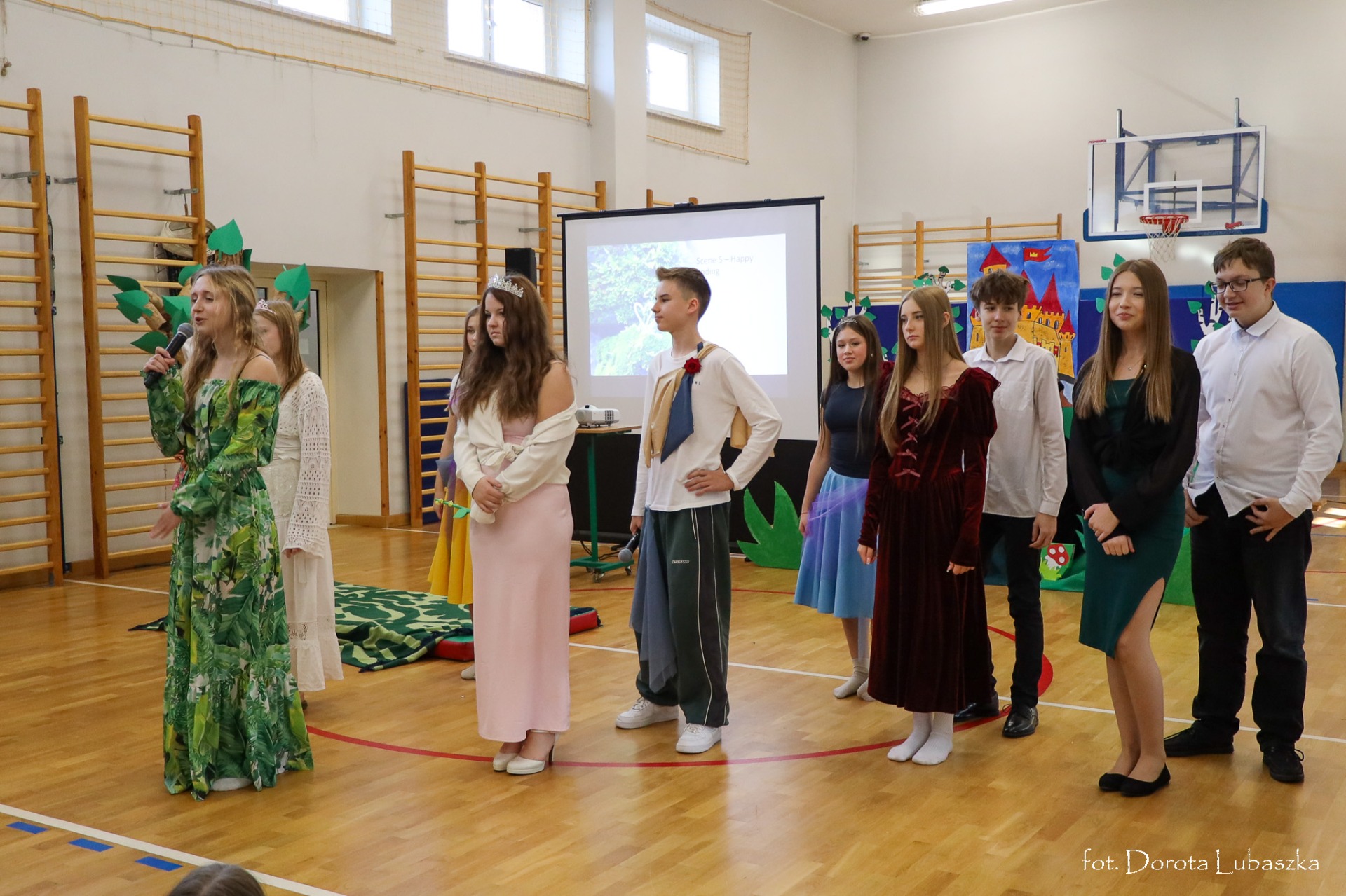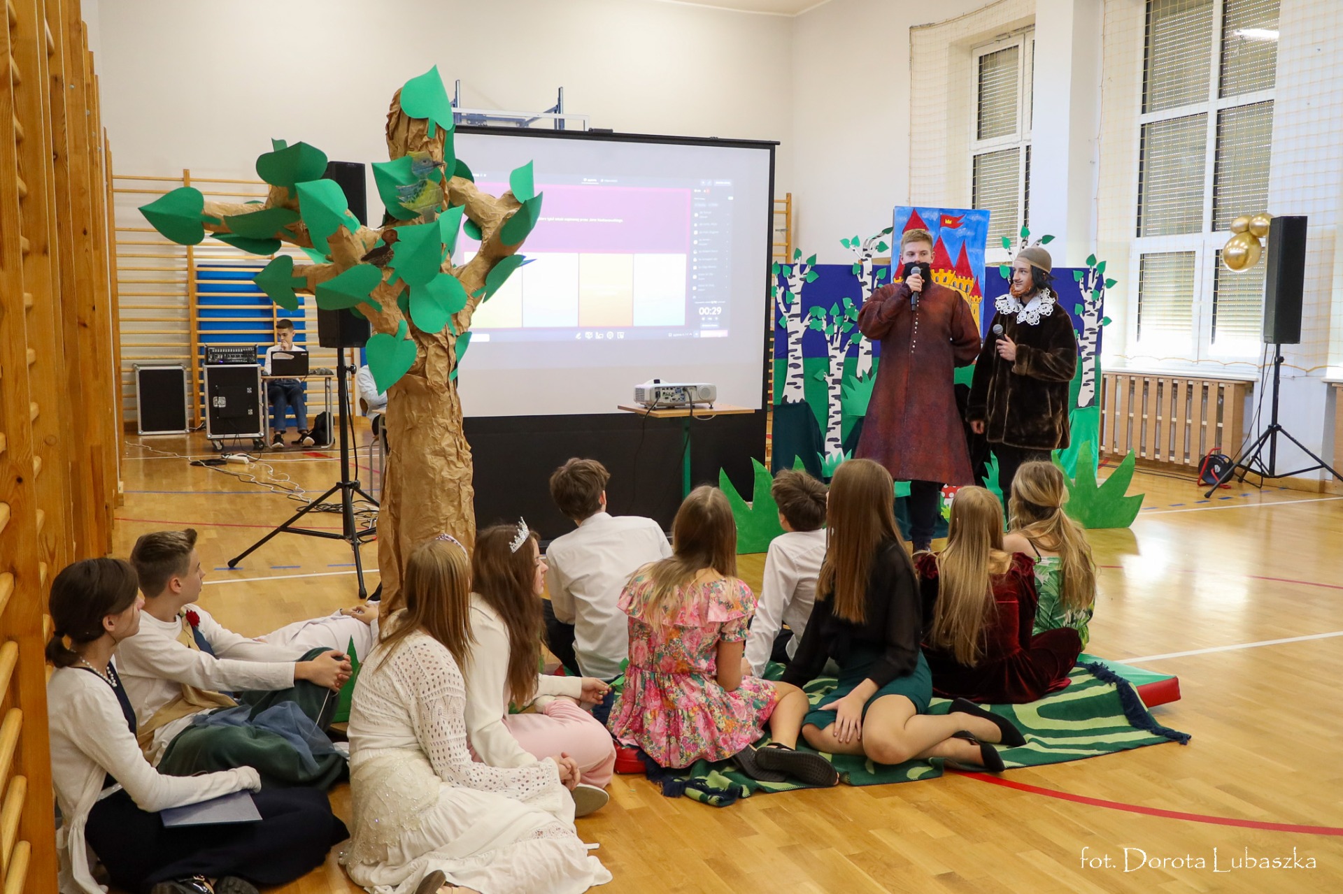 Klasa 8a, pod opieką pani E. Damentki i A. Koleszuk, wspaniale zaprezentowała się na scenie, wcielając się w role i przygotowując dekoracje.
