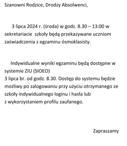 Odbiór zaświadczeń z egzaminu ósmoklasisty.